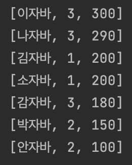 return s.totalScore - this.totalScore; // 총점 내림차순을 기본 정렬로 한다.